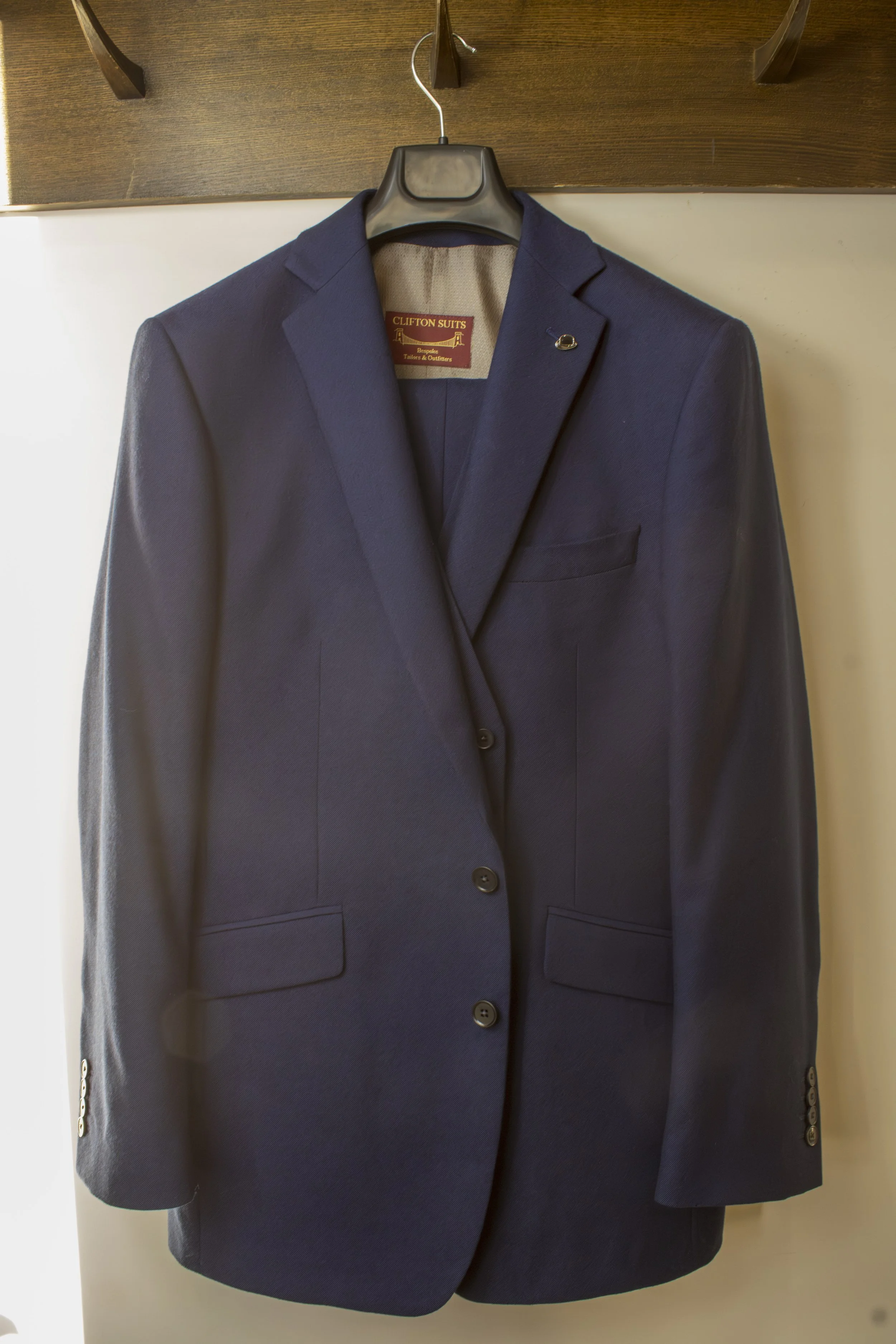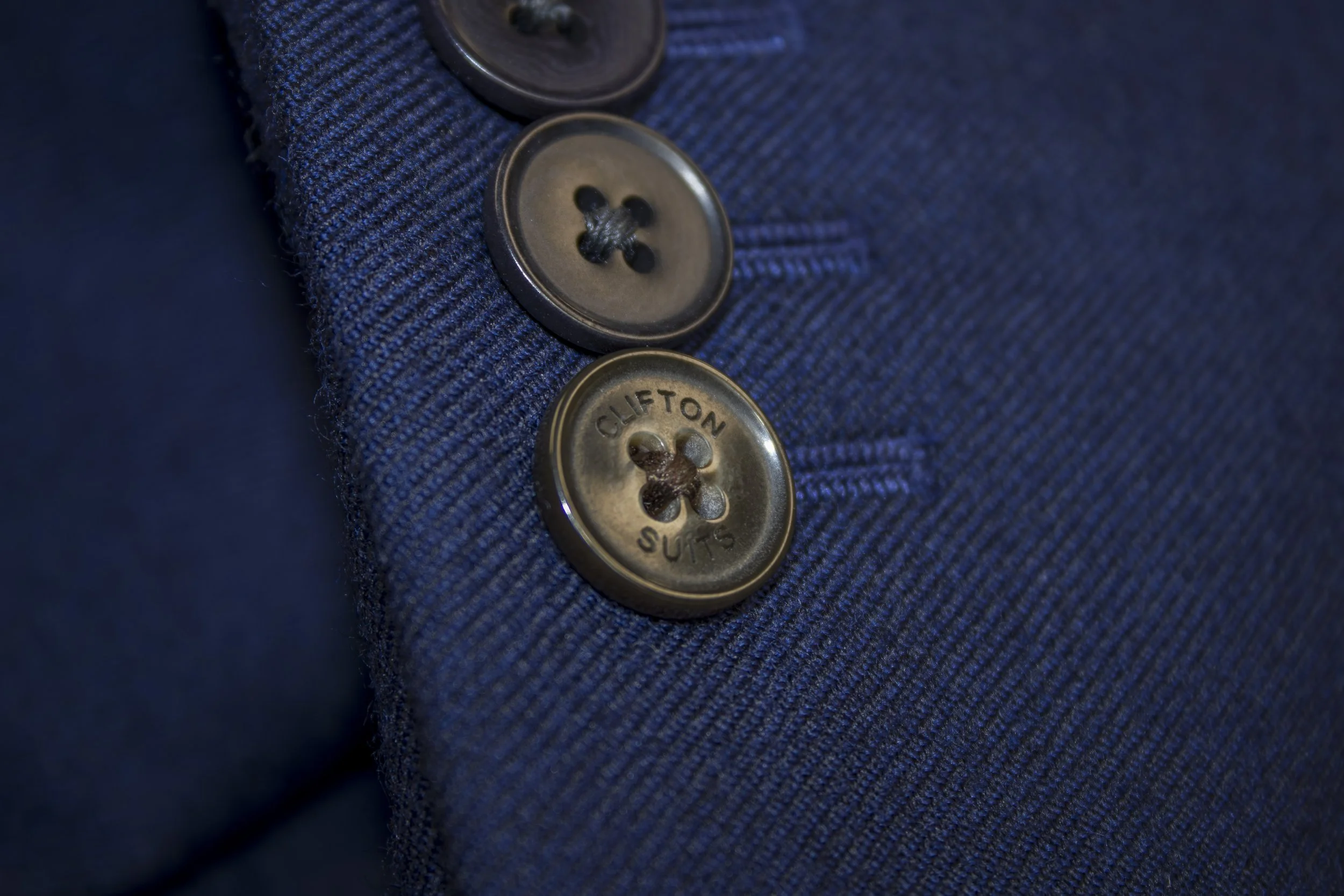 Cut on a modern, tailored block, this suit is crafted from a medium-weight 12oz cloth. Woven by the family-run mill Alfred Brown, the 100% wool fabric provides excellent structure, durability, and comfort. To elevate the finish, the jacket is lined with a silver diamond lining, complemented by a plain blue lining on the back of the waistcoat for a subtle, considered contrast.